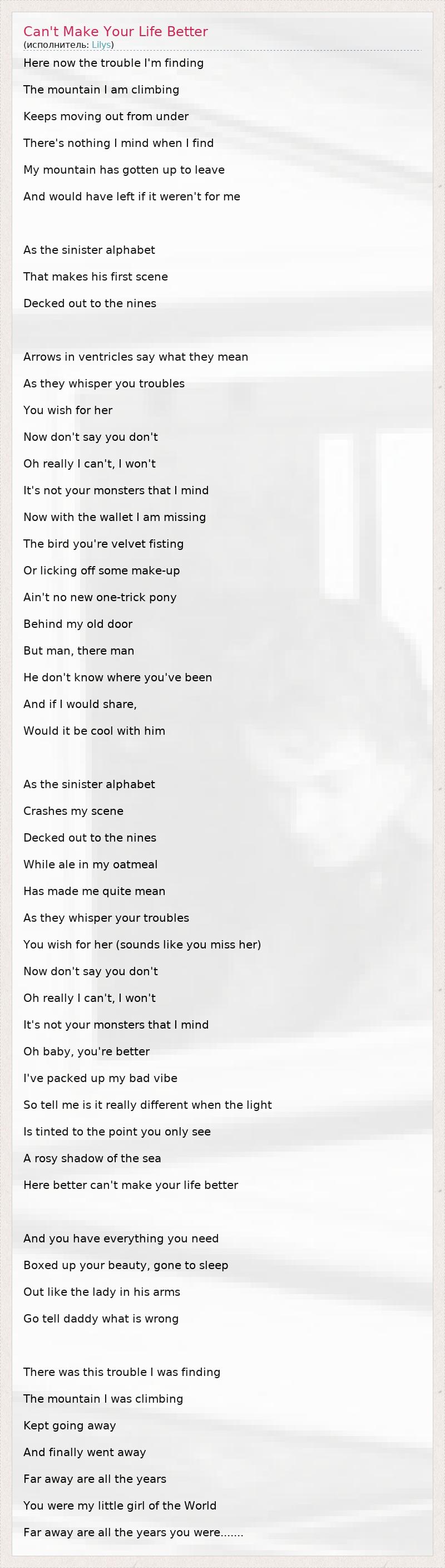 А как ты думаешь, о чем песня "Can't Make Your Life Better" ?