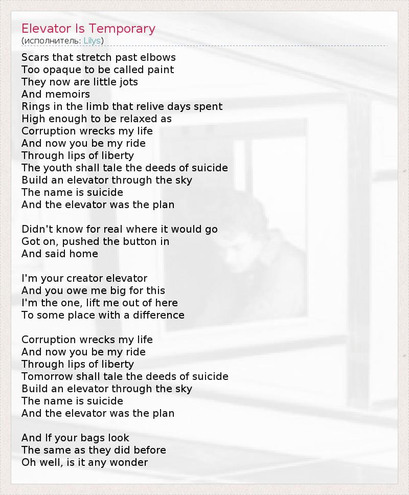 А как ты думаешь, о чем песня "Elevator Is Temporary" ?