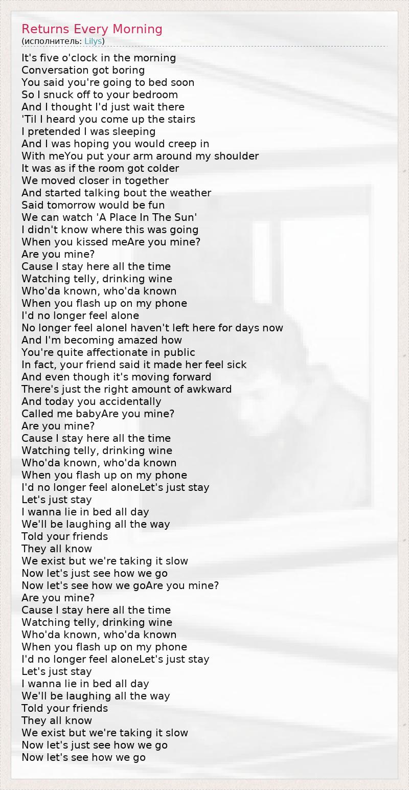ГлавнаяИсполнителиLilysReturns Every Morning