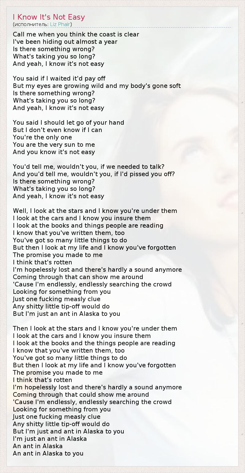 А как ты думаешь, о чем песня "I Know It's Not Easy" ?