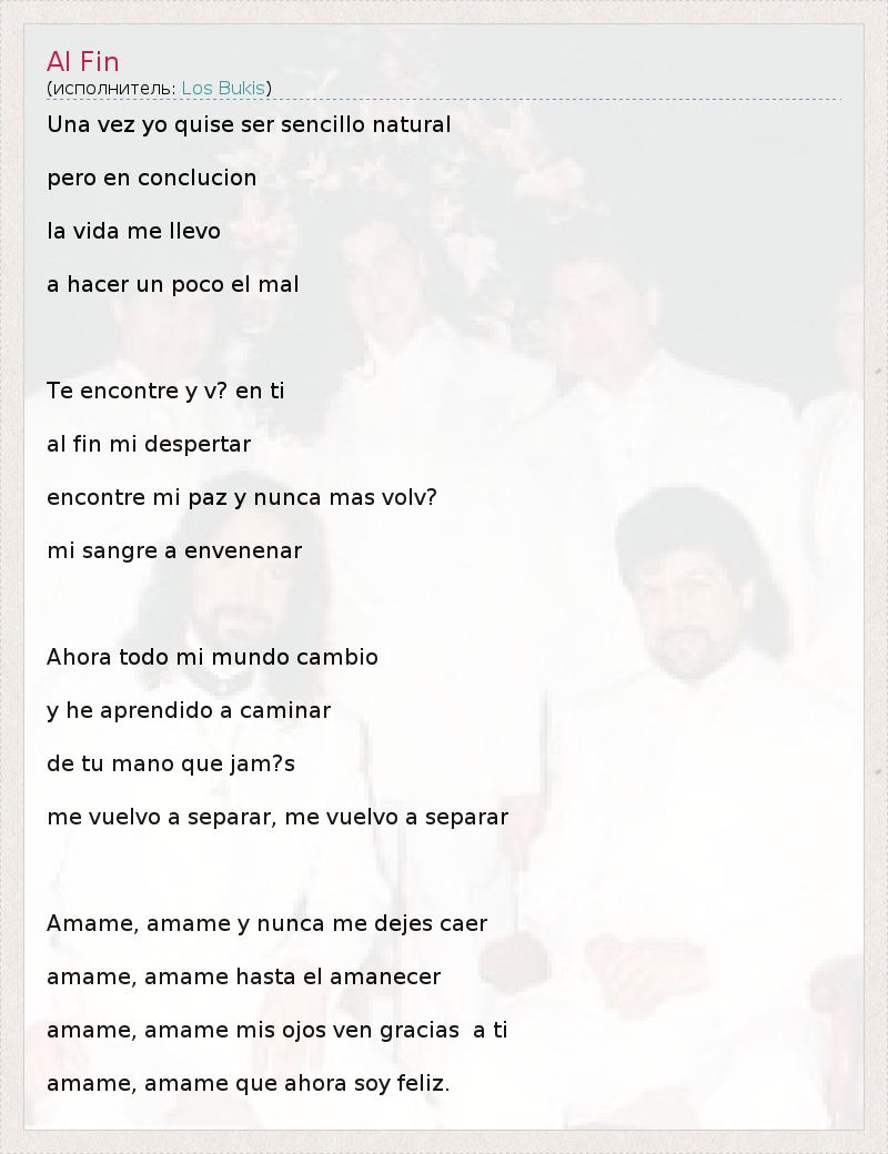 Una vez yo quise ser sencillo natural pero en conclucion la vida me llevo a hacer un poco el mal Te encontre y v? en ti al fin mi despertar encontre mi paz y nunca mas volv? mi sangre a envenenar Ahora todo mi mundo cambio y he aprendido a caminar de tu mano que jam?s me vuelvo a separar, me vuelvo a separar Amame, amame y nunca me dejes caer amame, amame hasta el amanecer amame, amame mis ojos ven gracias a ti amame, amame que ahora soy feliz.