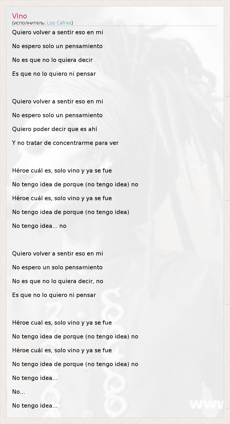 Quiero volver a sentir eso en mi No espero solo un pensamiento No es que no lo quiera decir Es que no lo quiero ni pensar Quiero volver a sentir eso en mi No espero solo un pensamiento Quiero poder decir que es ahí Y no tratar de concentrarme para ver Héroe cuál es, solo vino y ya se fue No tengo idea de porque (no tengo idea) no Héroe cuál es, solo vino y ya se fue No tengo idea de porque (no tengo idea) No tengo idea... no Quiero volver a sentir eso en mi No espero un solo pensamiento No es que no lo quiera decir, no Es que no lo quiero ni pensar Héroe cual es, solo vino y ya se fue No tengo idea de porque (no tengo idea) no Héroe cuál es, solo vino y ya se fue No tengo idea de porque (no tengo idea) no No tengo idea... No... No tengo idea...