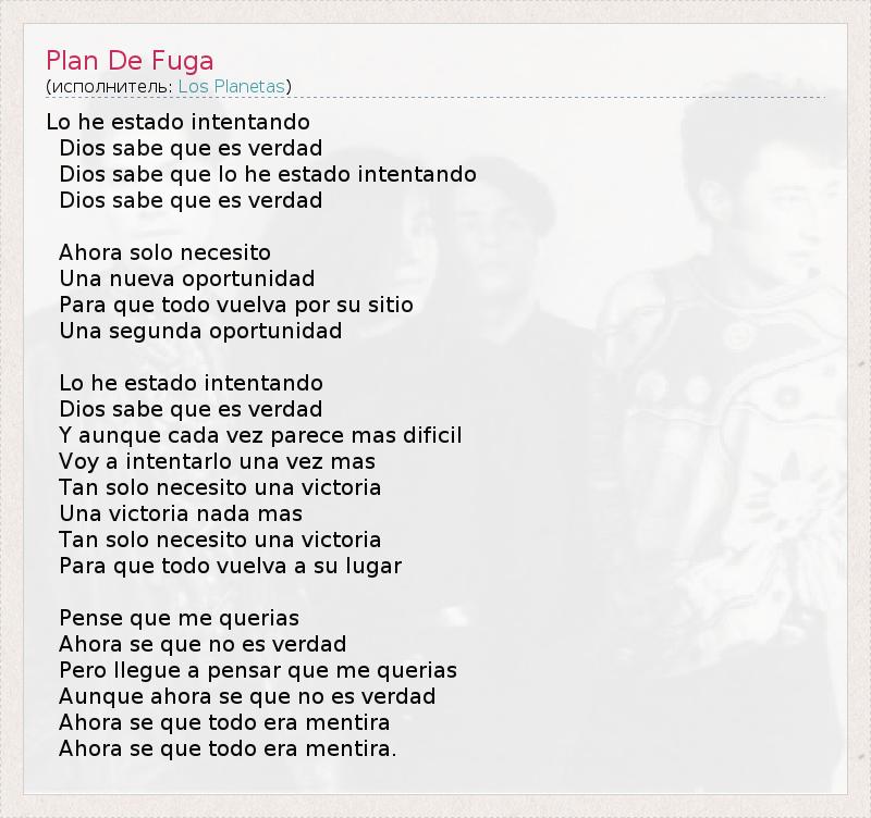 А как ты думаешь, о чем песня "Plan De Fuga" ?