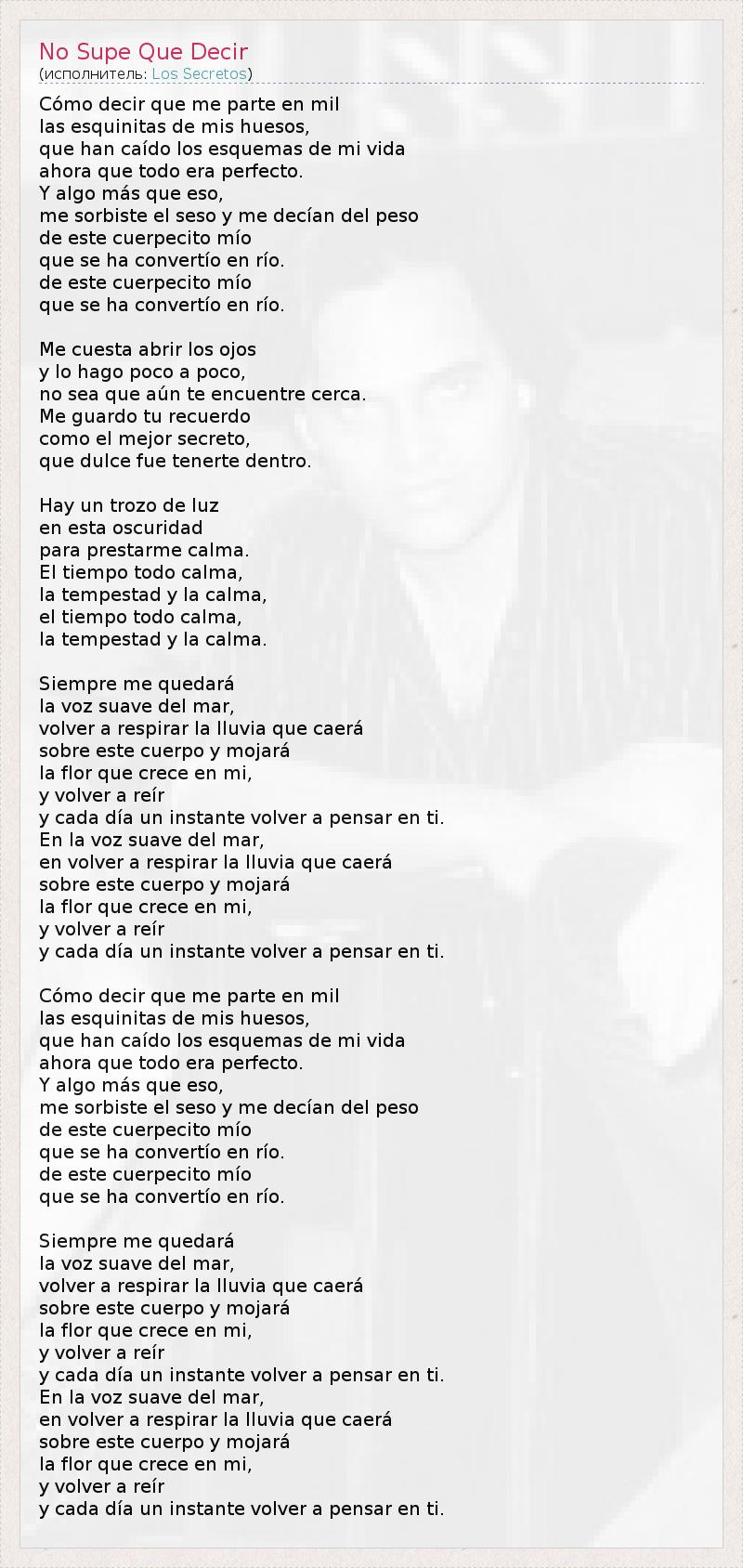 А как ты думаешь, о чем песня "No Supe Que Decir" ?