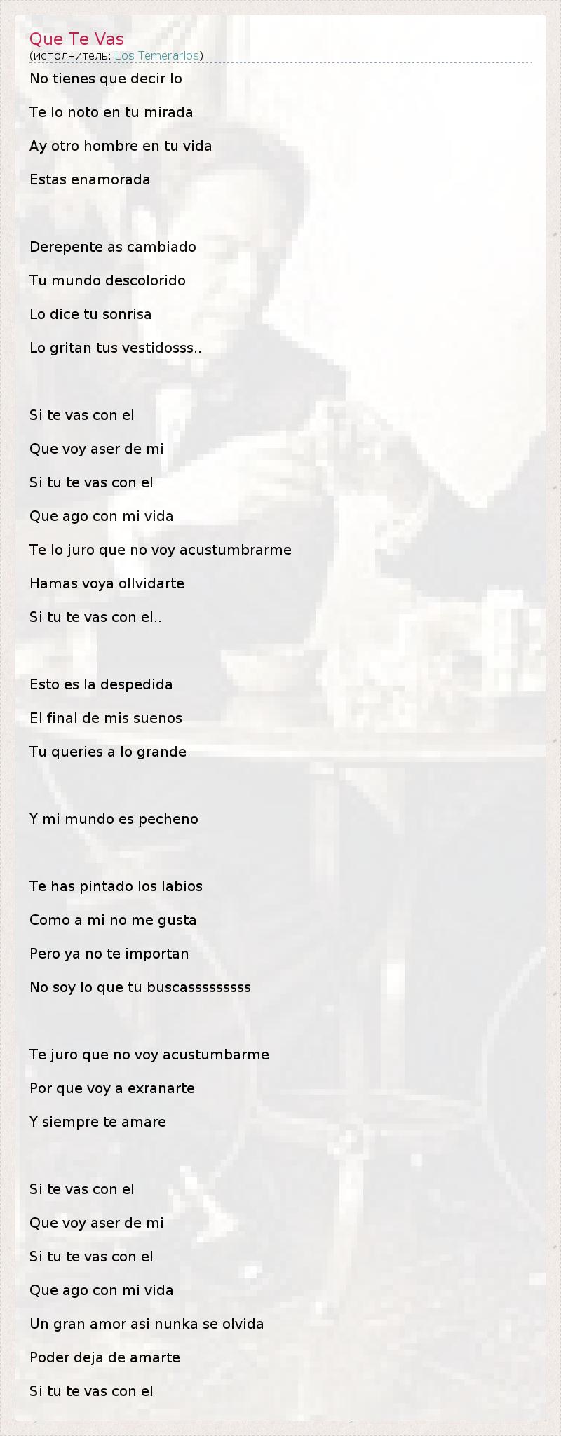 А как ты думаешь, о чем песня "Que Te Vas" ?