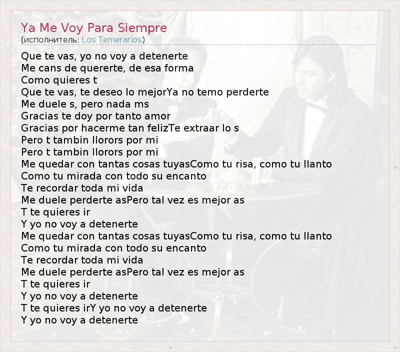 А как ты думаешь, о чем песня "Ya Me Voy Para Siempre" ?