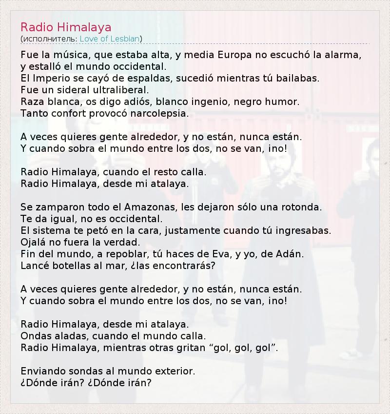 А как ты думаешь, о чем песня "Radio Himalaya" ?