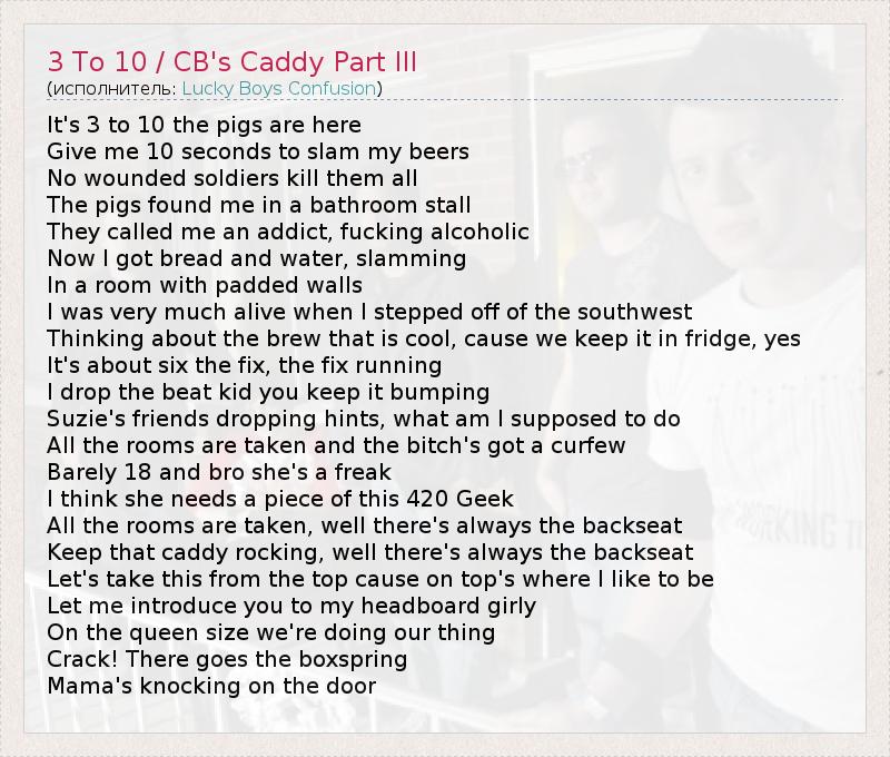 А как ты думаешь, о чем песня "3 To 10 / CB's Caddy Part III" ?