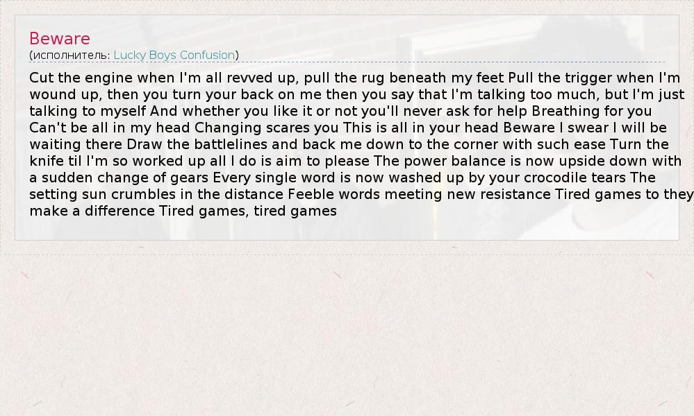 setting sun crumbles in the distance Feeble words meeting new resistance Tired games to they
