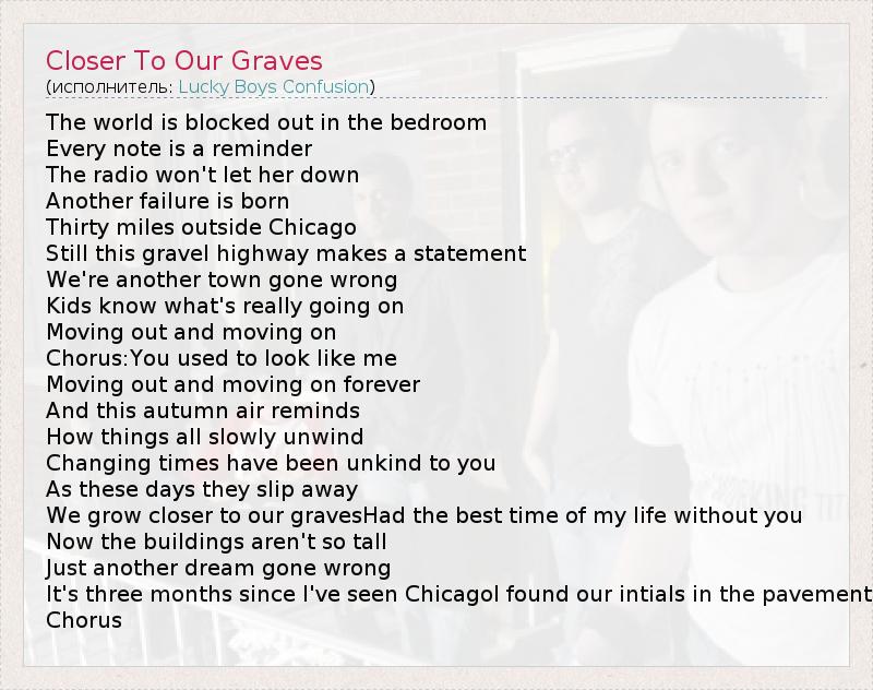 А как ты думаешь, о чем песня "Closer To Our Graves" ?