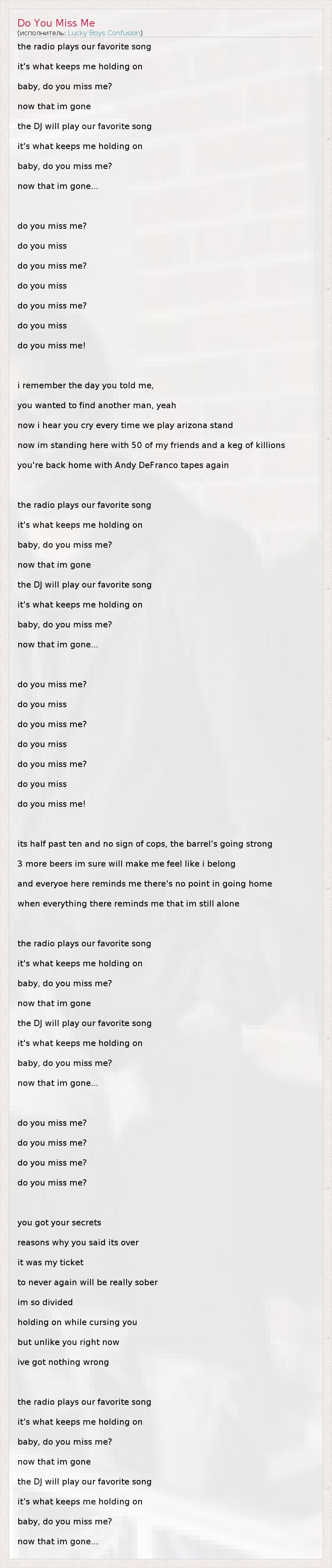 А как ты думаешь, о чем песня "Do You Miss Me" ?
