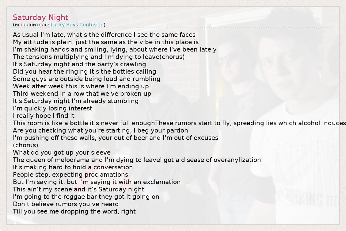 А как ты думаешь, о чем песня "Saturday Night" ?