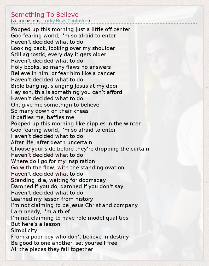 А как ты думаешь, о чем песня "Something To Believe" ?