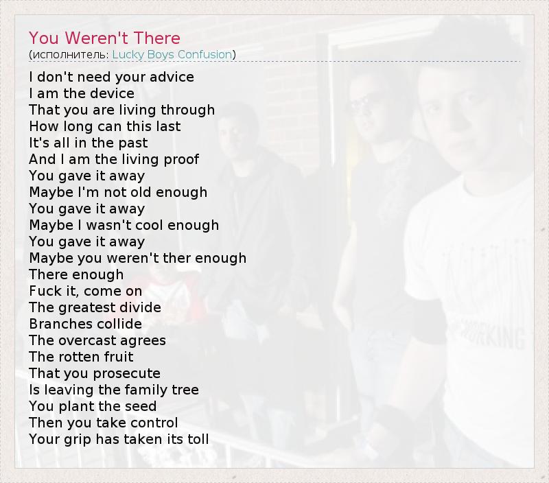 А как ты думаешь, о чем песня "You Weren't There" ?