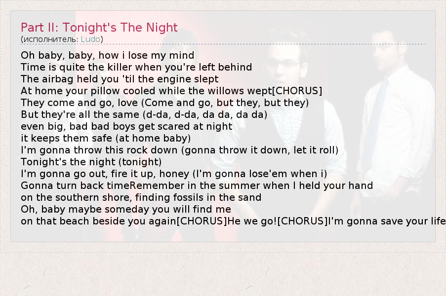 А как ты думаешь, о чем песня "Part II: Tonight's The Night" ?