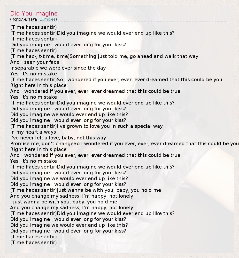 А как ты думаешь, о чем песня "Did You Imagine" ?