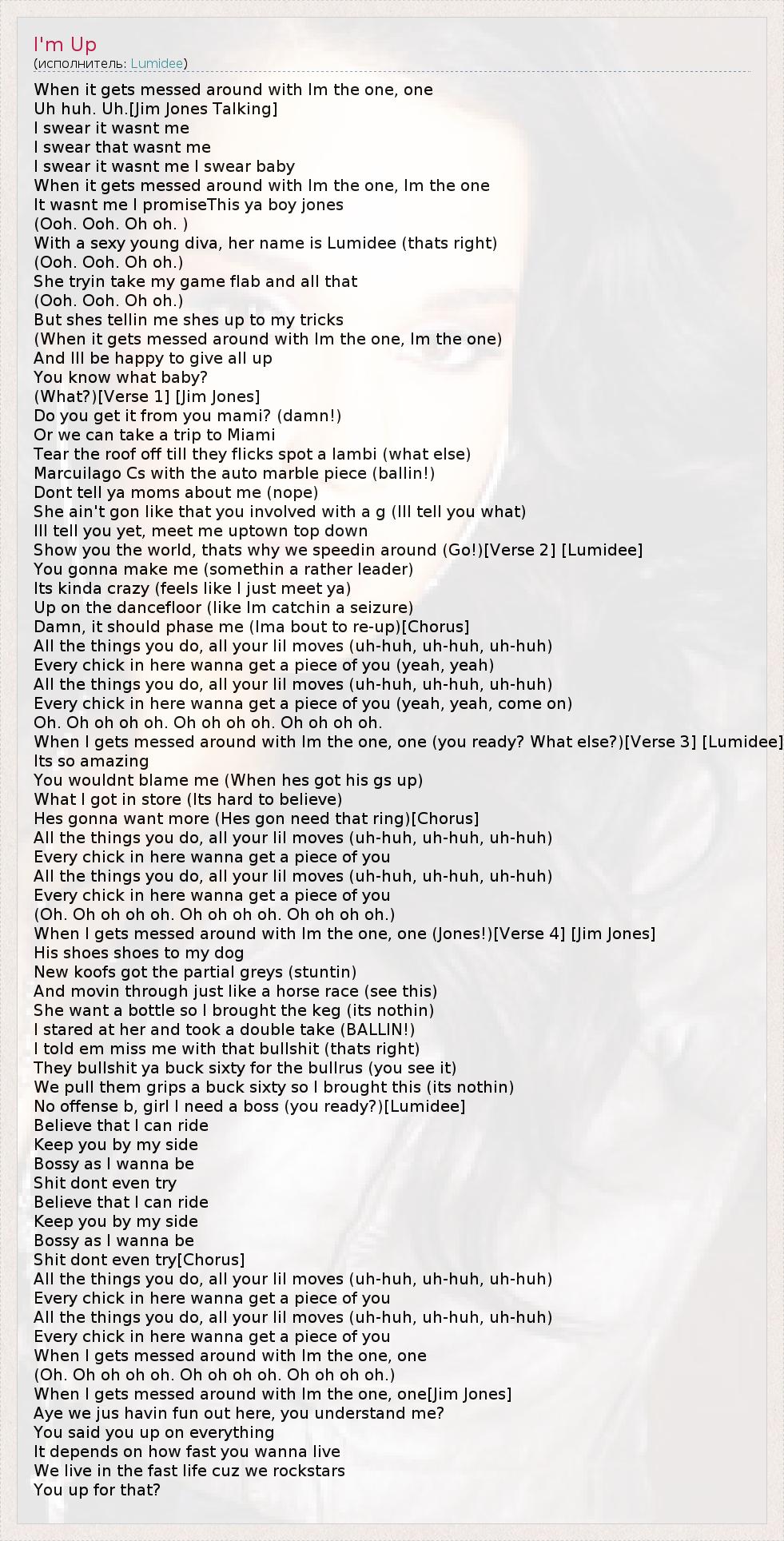 А как ты думаешь, о чем песня "I'm Up" ?