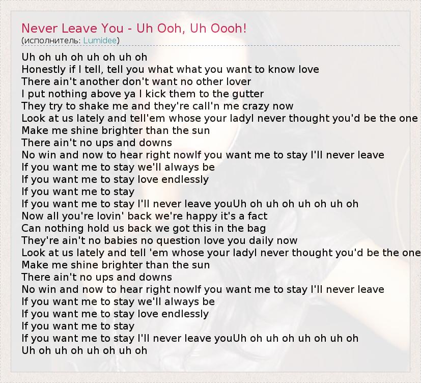 А как ты думаешь, о чем песня "Never Leave You - Uh Ooh, Uh Oooh!" ?