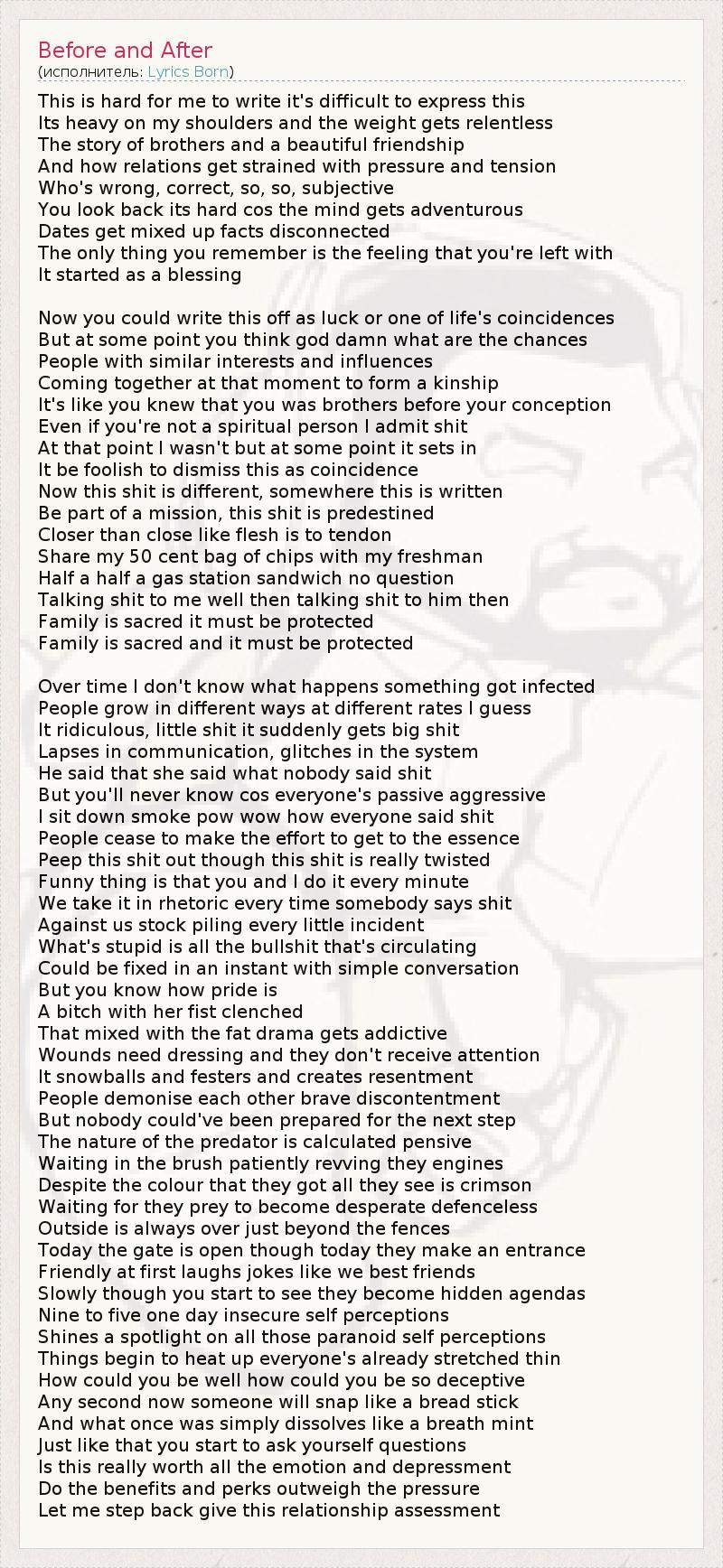А как ты думаешь, о чем песня "Before and After" ?