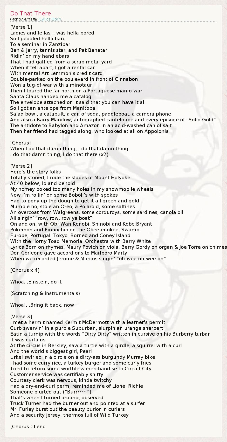 А как ты думаешь, о чем песня "Do That There" ?