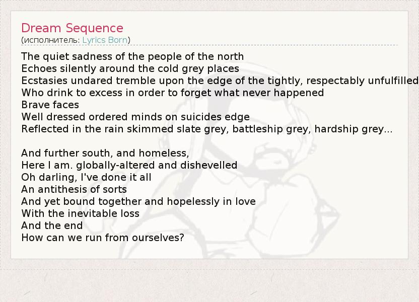 А как ты думаешь, о чем песня "Dream Sequence" ?