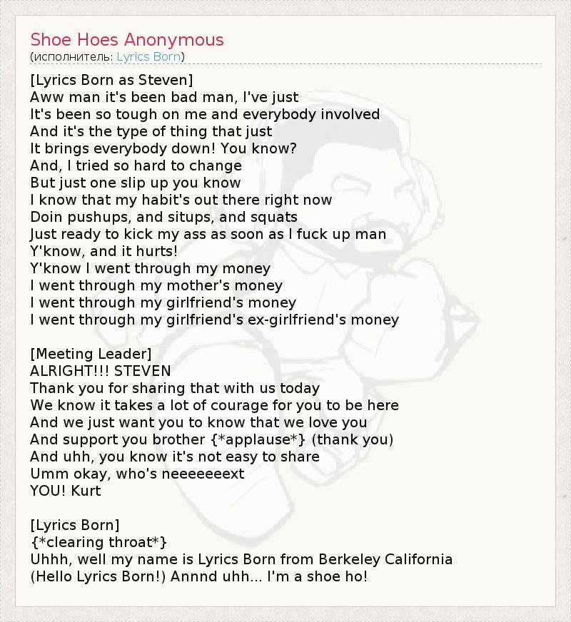 А как ты думаешь, о чем песня "Shoe Hoes Anonymous" ?