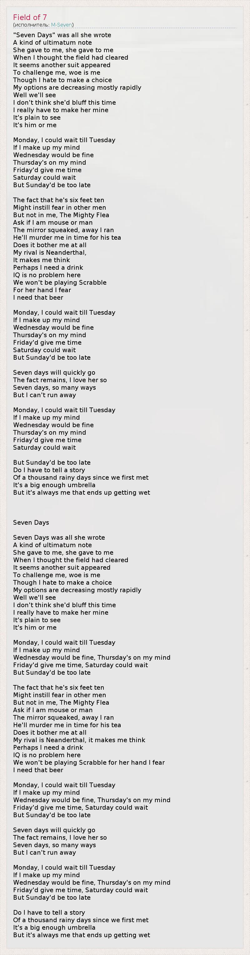 Семь дней (перевод Светлана из Москвы)