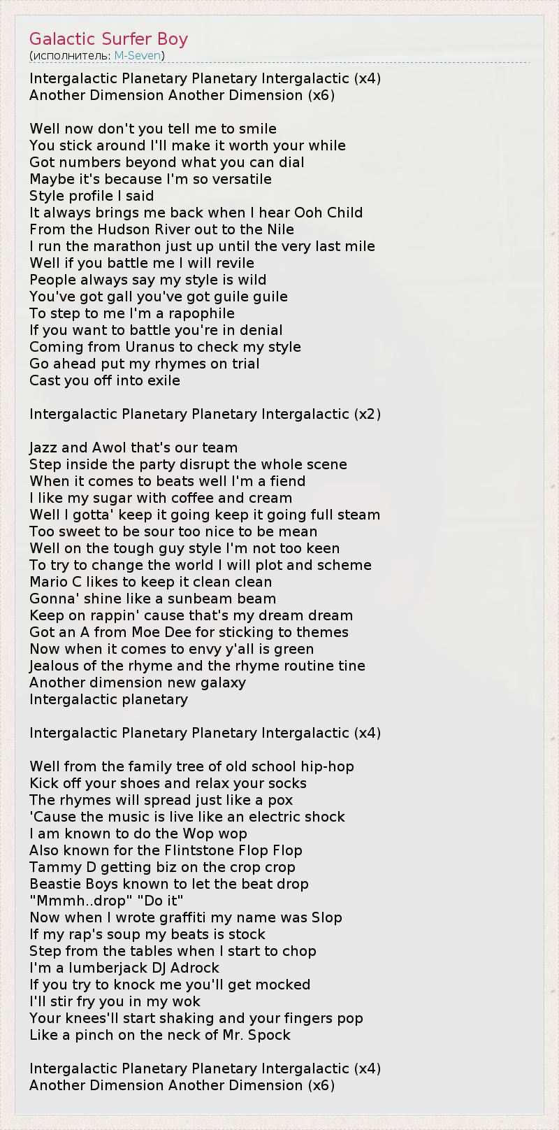 А как ты думаешь, о чем песня "Galactic Surfer Boy" ?