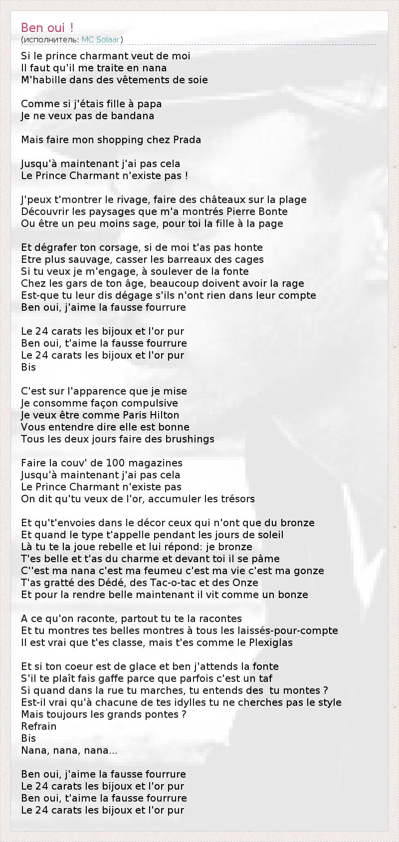 А как ты думаешь, о чем песня "Ben oui !" ?