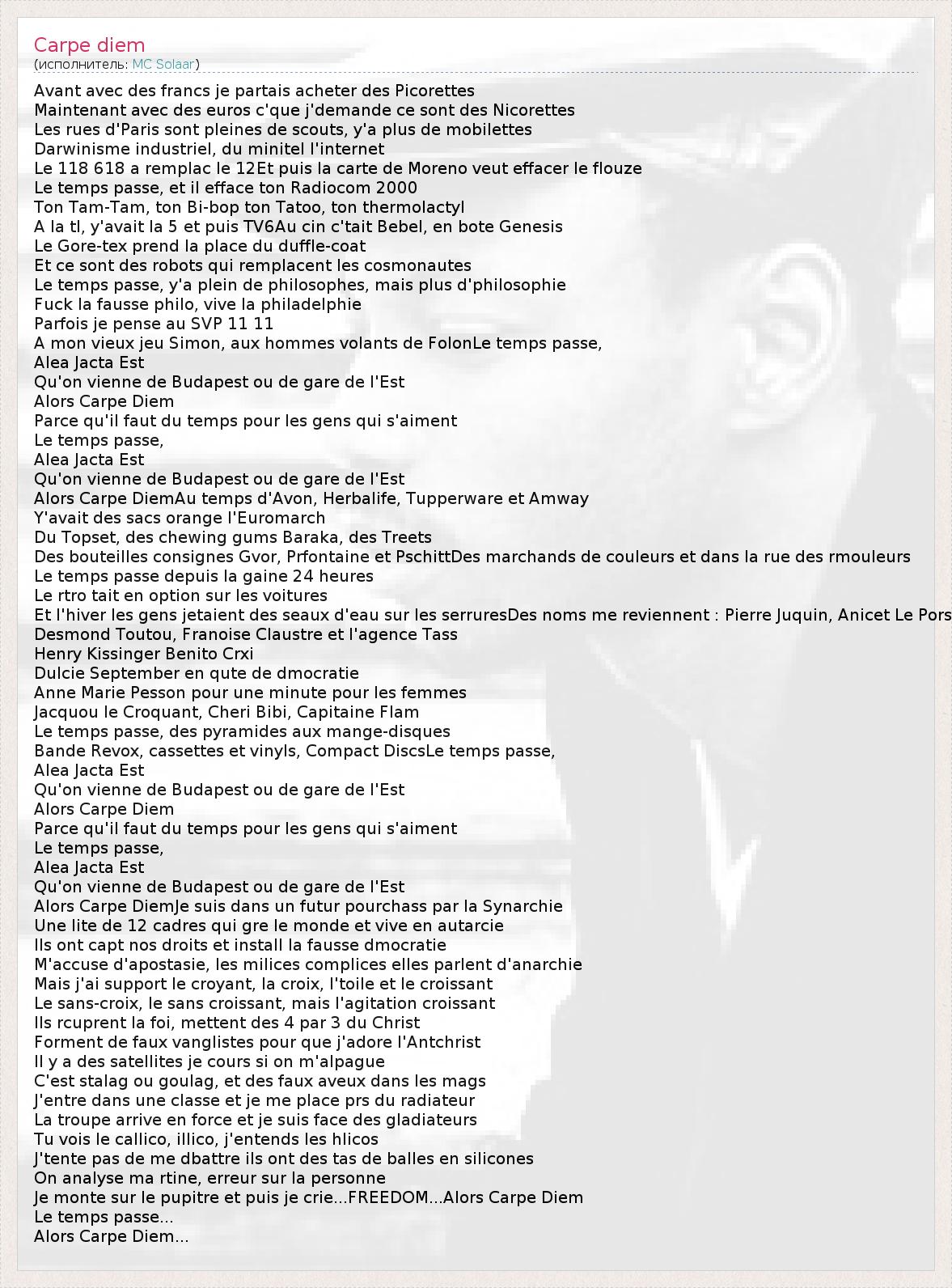 А как ты думаешь, о чем песня "Carpe diem" ?