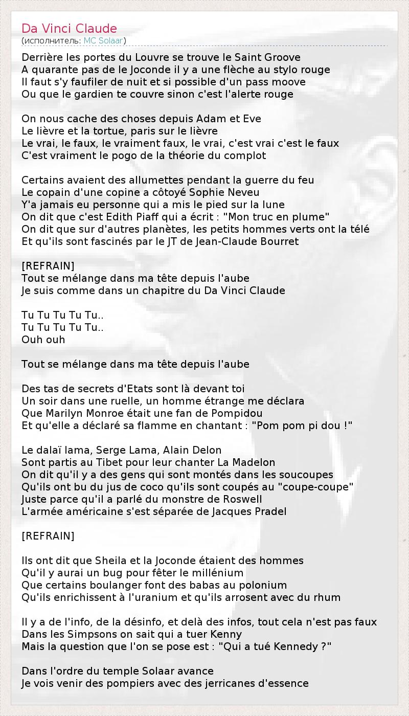 А как ты думаешь, о чем песня "Da Vinci Claude" ?