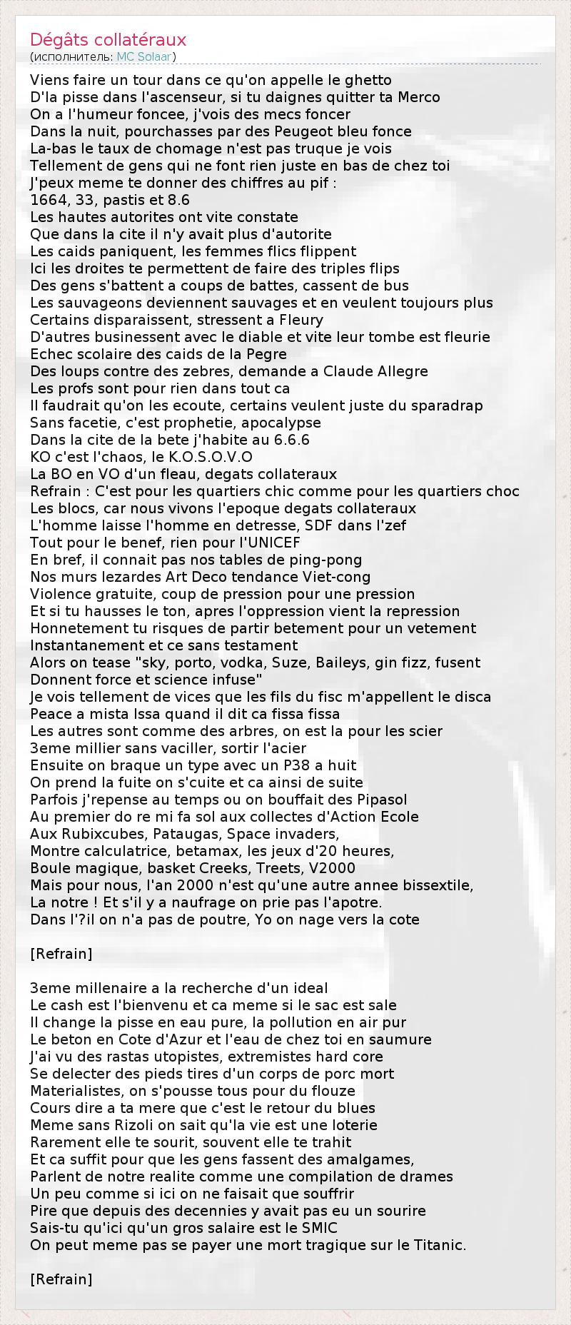 ГлавнаяИсполнителиMC SolaarDégâts collatéraux