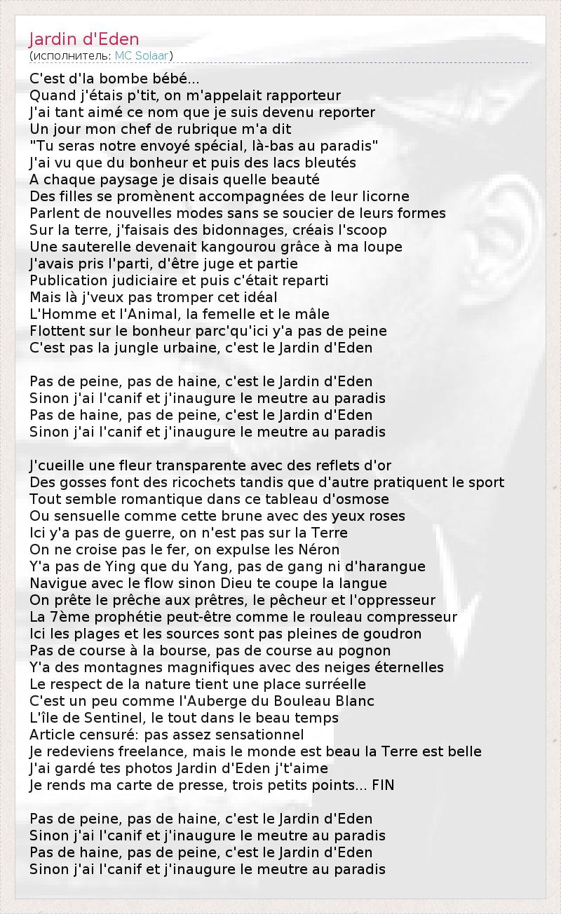 А как ты думаешь, о чем песня "Jardin d'Eden" ?