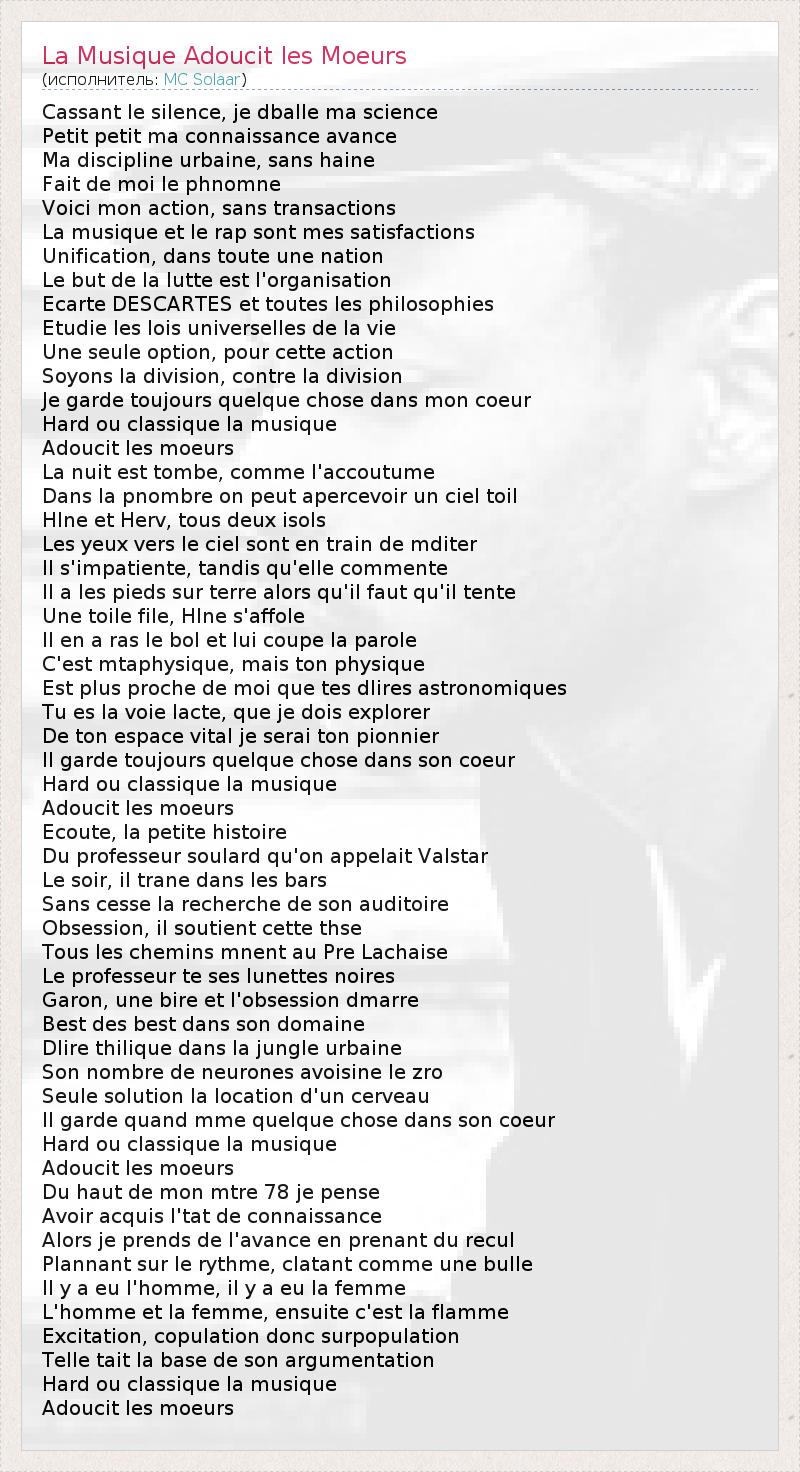 ГлавнаяИсполнителиMC SolaarLa Musique Adoucit les Moeurs