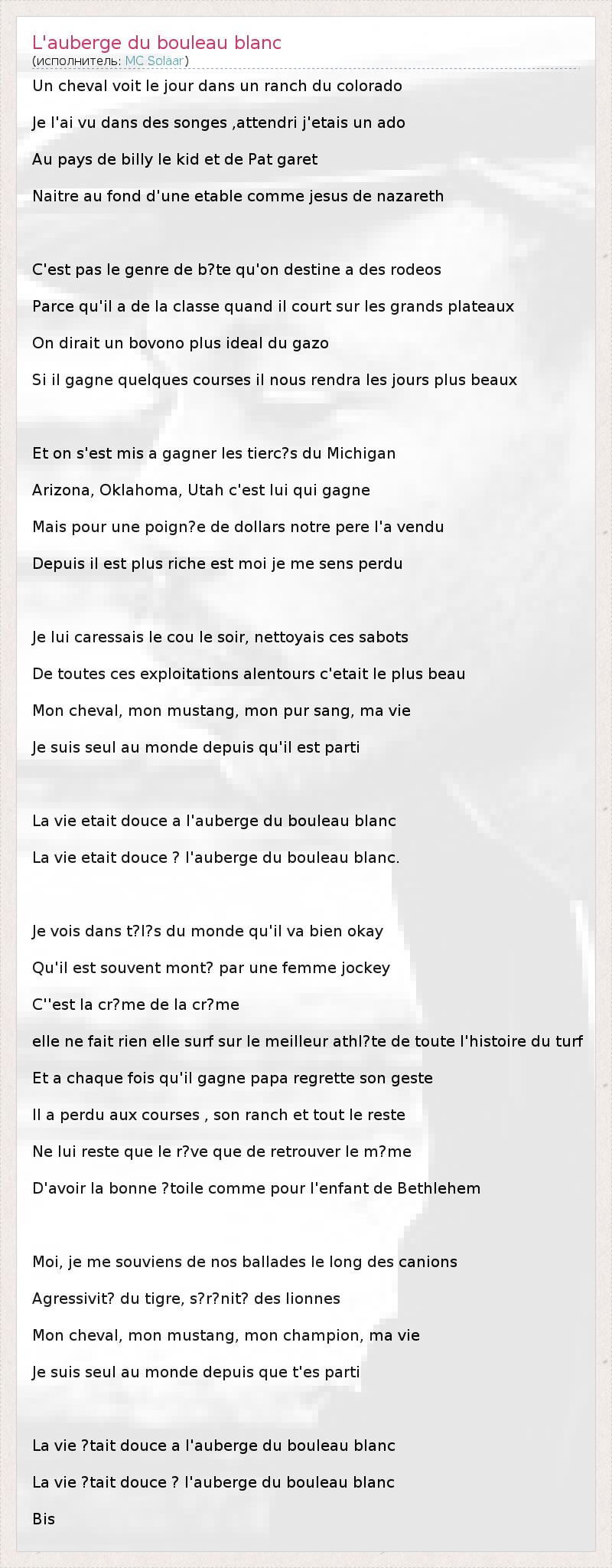ГлавнаяИсполнителиMC SolaarL'auberge du bouleau blanc