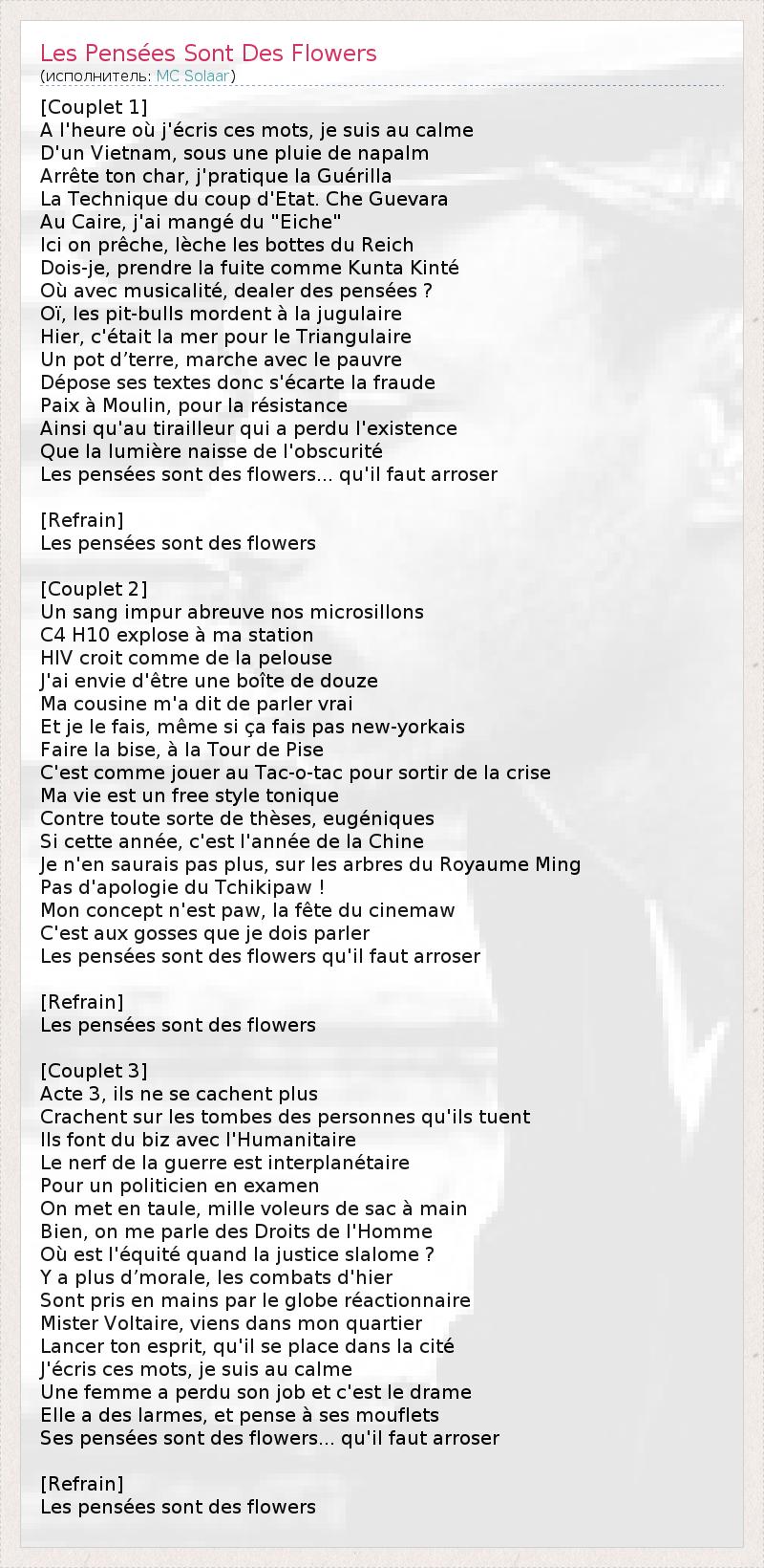 ГлавнаяИсполнителиMC SolaarLes Pensées Sont Des Flowers