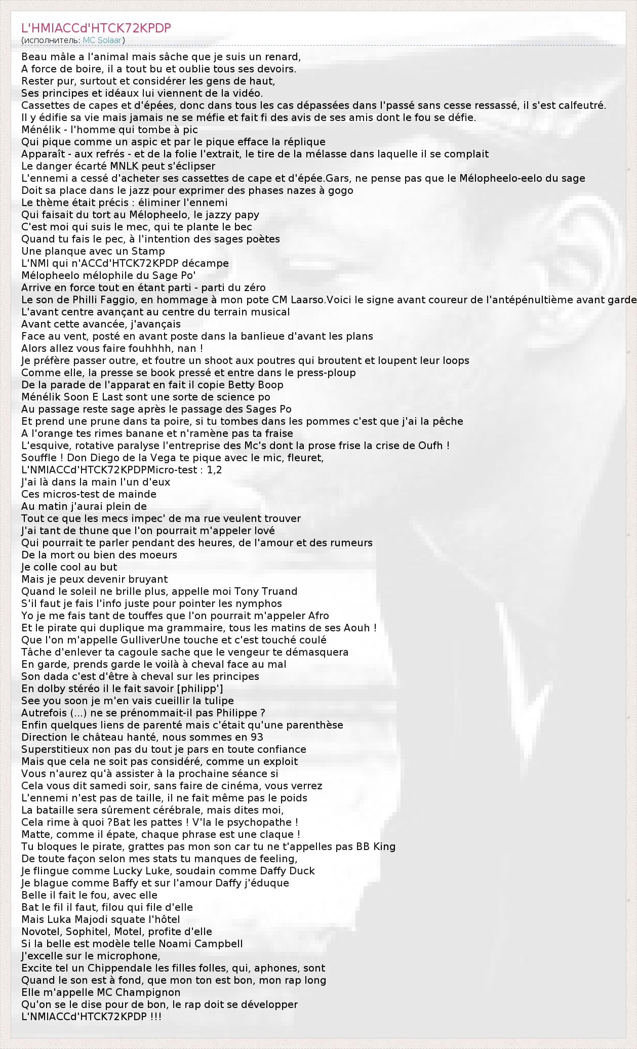 А как ты думаешь, о чем песня "L'HMIACCd'HTCK72KPDP" ?