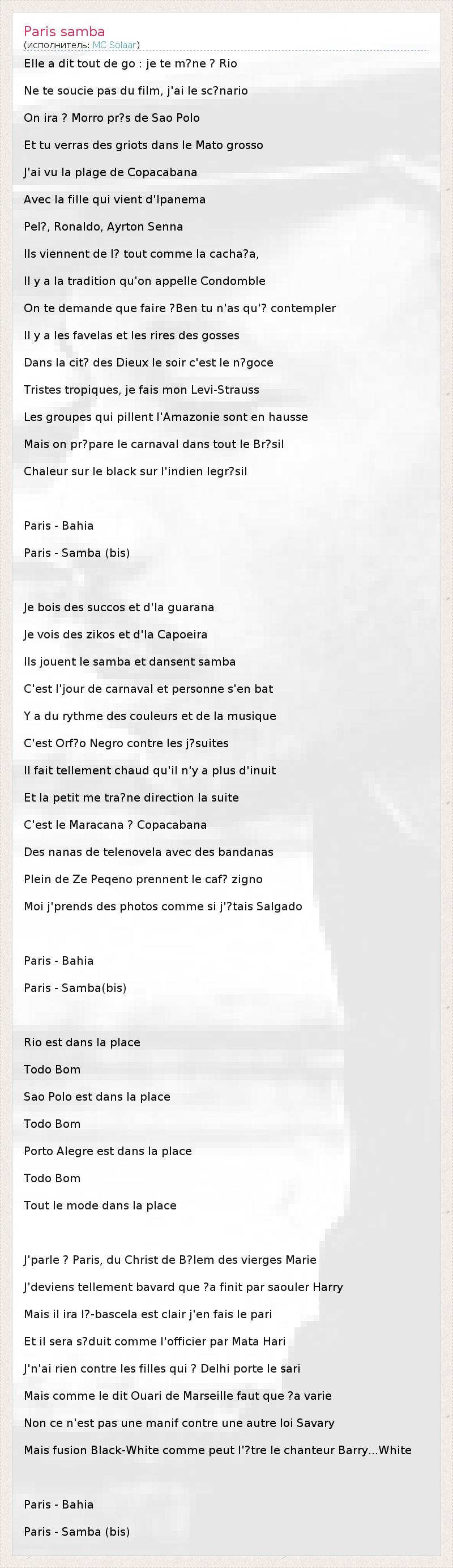 А как ты думаешь, о чем песня "Paris samba" ?