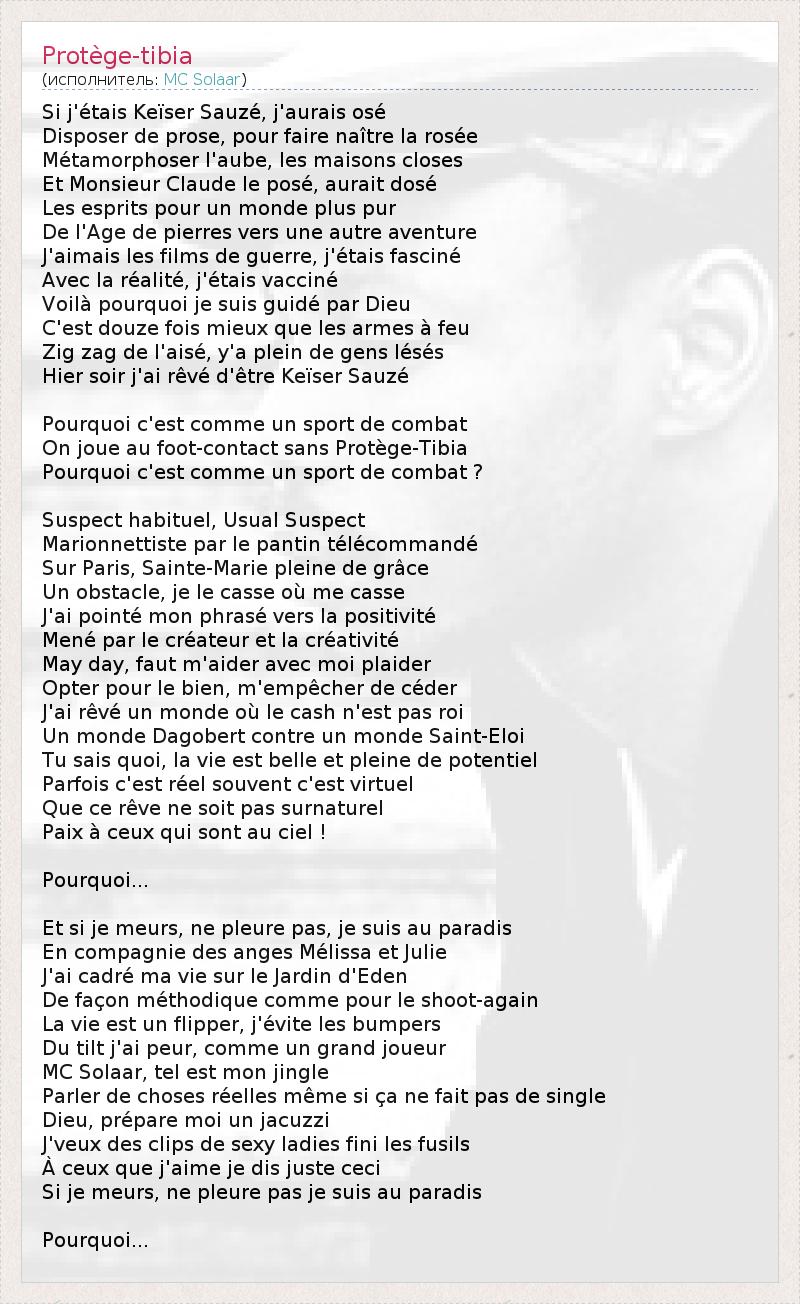 А как ты думаешь, о чем песня "Protège-tibia" ?