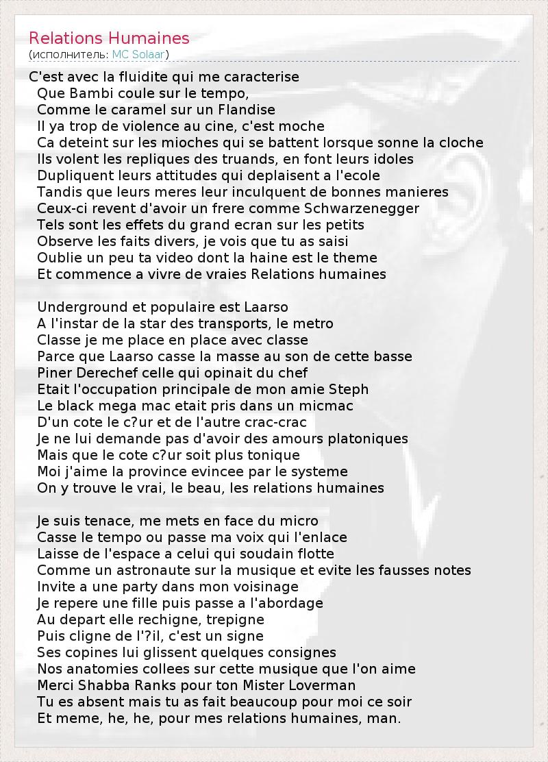 А как ты думаешь, о чем песня "Relations Humaines" ?