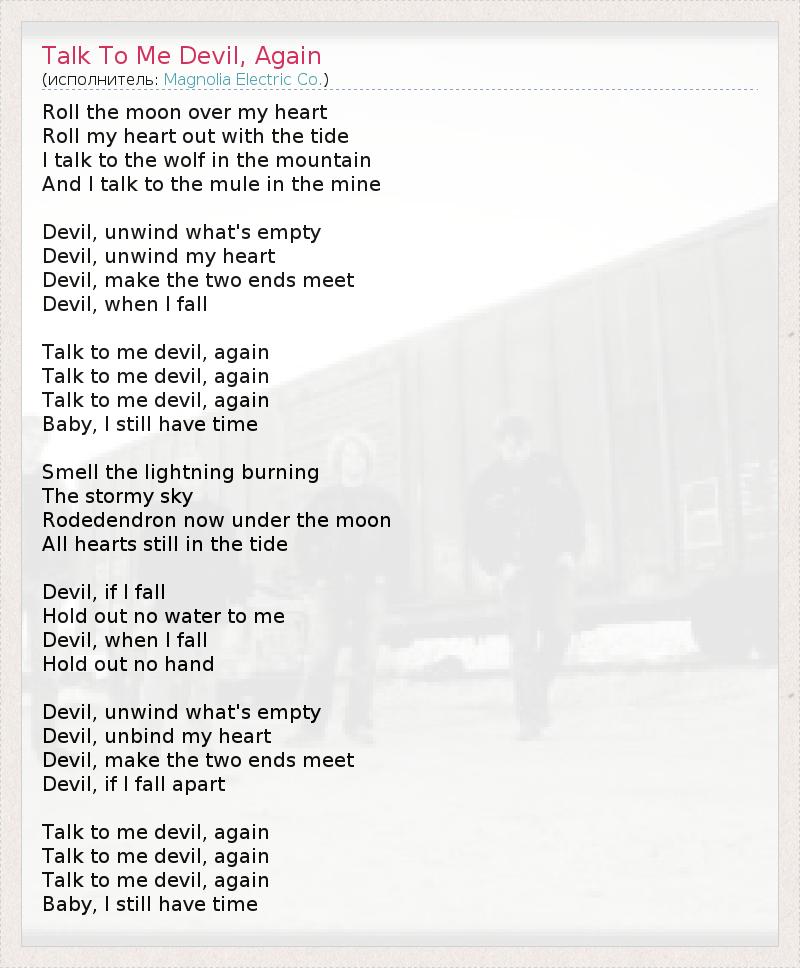 А как ты думаешь, о чем песня "Talk To Me Devil, Again" ?