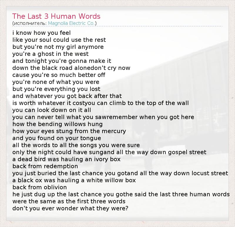 А как ты думаешь, о чем песня "The Last 3 Human Words" ?