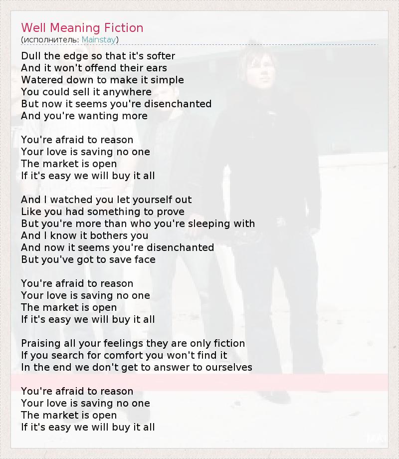 А как ты думаешь, о чем песня "Well Meaning Fiction" ?