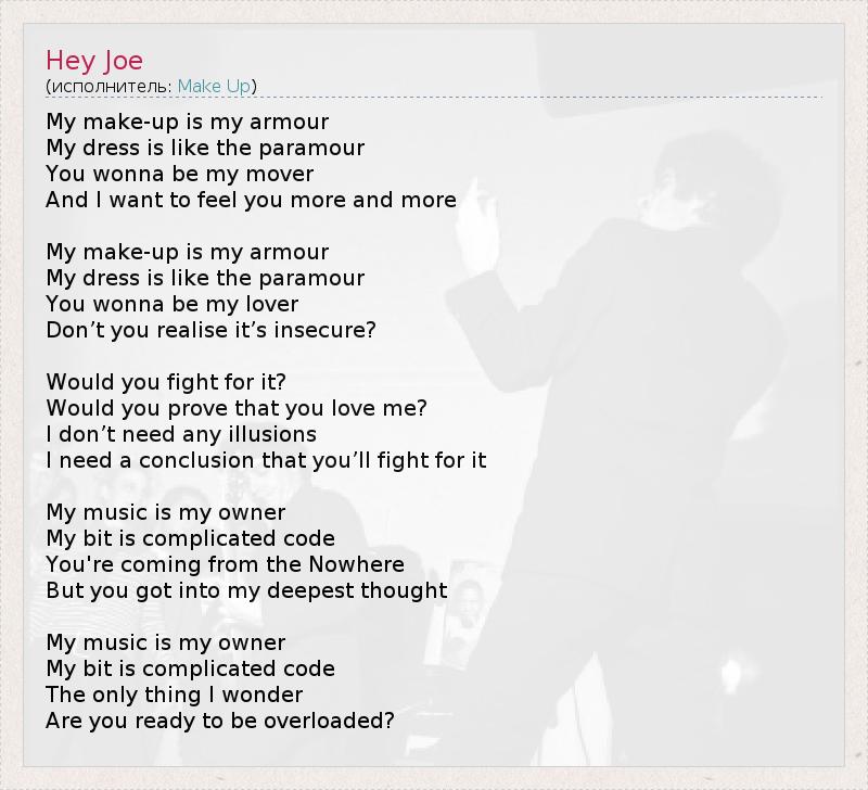А как ты думаешь, о чем песня "Hey Joe" ?
