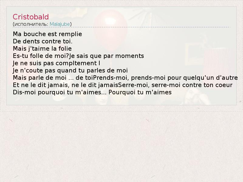 А как ты думаешь, о чем песня "Cristobald" ?