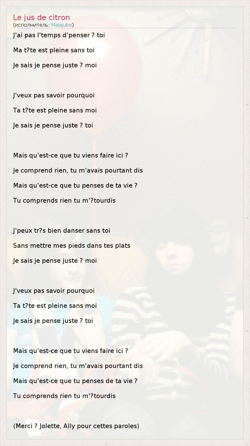 А как ты думаешь, о чем песня "Le jus de citron" ?
