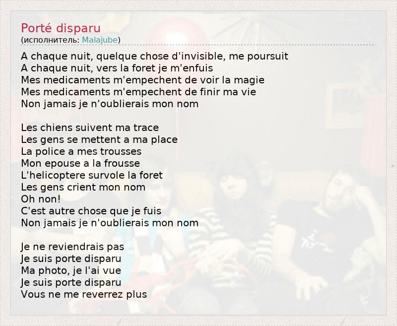 А как ты думаешь, о чем песня "Porté disparu" ?
