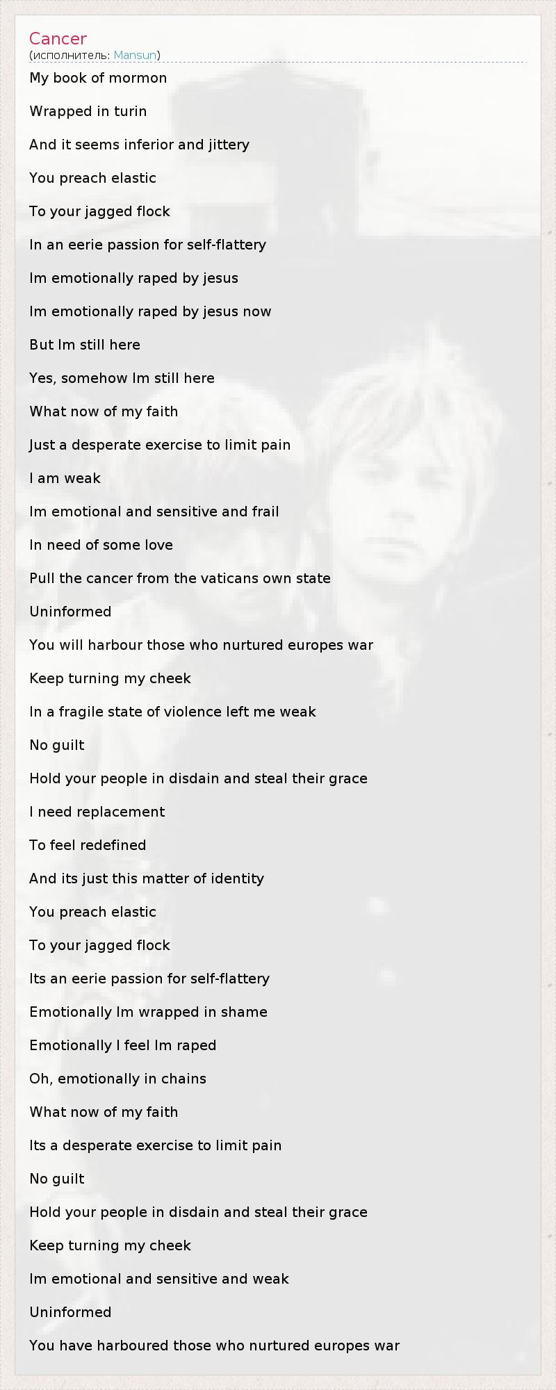 А как ты думаешь, о чем песня "Cancer" ?