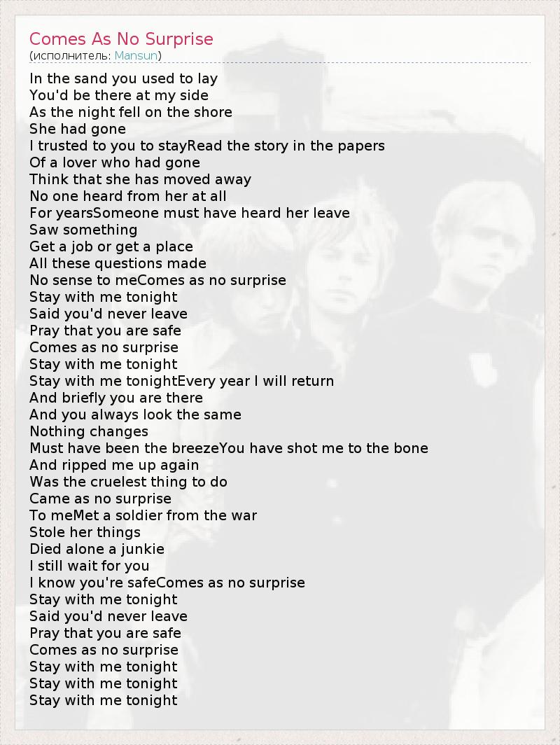 А как ты думаешь, о чем песня "Comes As No Surprise" ?