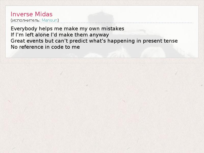 А как ты думаешь, о чем песня "Inverse Midas" ?